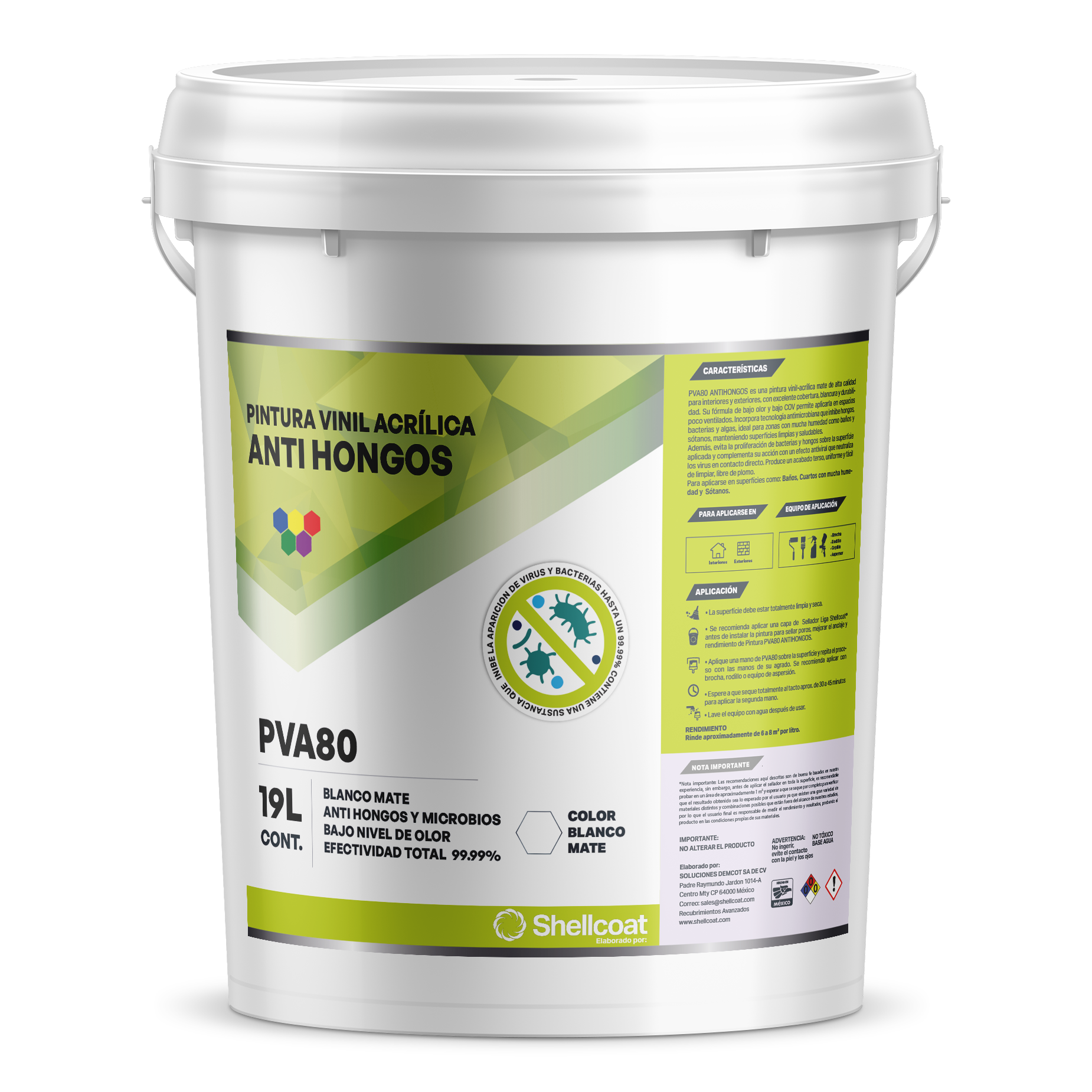 Pintura antihongos PVA80 esta Diseñada para muros y plafones, la PVA80 es ideal para áreas donde se requiere mayor higiene ambiental, como viviendas, oficinas, escuelas, hospitales y comercios. Funciona perfectamente sobre superficies de concreto, yeso, tabique, panel de yeso y aplanados correctamente preparados.